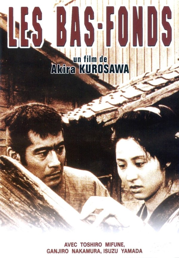 Grâce à un humour très présent, Akira Kurosawa arrive à atténuer le terrible destin de ses personnages et nous permet d’observer ce film sans être accablé par la lourdeur de cette misère. Comme le font les gens pour s’évader de leur dur quotidien, il recréé des scènes de rigolades et d’amusement qui sont autant d’apartés que les personnages utilisent pour quitter un instant leur condition. Le réalisateur pose sur ces pauvres bougres un regard emplit de tendresse malgré tous leurs défauts, et signe un film extrêmement touchant. Le scénario, adapté par lui-même et un de ses scénaristes fétiches Hideo Oguni de la pièce de Maxime Gorki est transposé au Japon du 19ème siècle avec beaucoup de pertinence. Ce film est également un exemple de la totale maîtrise de l’espace et du noir et blanc d’Akira Kurosawa, avec des images somptueuses malgré la pauvreté de l’endroit. Côté acteurs, de belles performances de Toshirô Mifune et Bokuzen Hidari chez les hommes, ainsi que des deux femmes Kyôko Kagawa et Isuzu Yamada, tous les quatre habitués des films de ce réalisateur. Malgré une noirceur et une dureté du propos, « Les Bas-fonds » est une tragi-comédie qui ne manque pas d’humour et d’humanité, un véritable film majeur d’Akira Kurosawa.