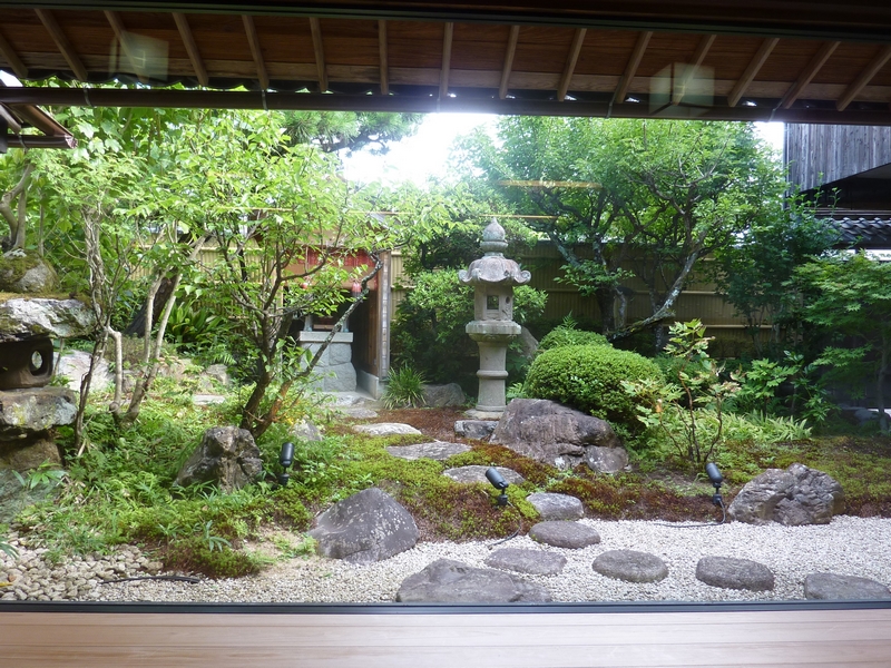 A notre arrivée, nous avons été surpris d’être appelés par notre nom sans avoir fait les présentations, mais nous avons juste laissés les bagages afin d’aller manger dehors et faire quelques visites. De retour au ryokan en milieu d’après-midi, deux chaussons nous attendaient dans l’entrée…comment ont-ils su que nous arrivions ? Une employée nous a alors fait visiter le ryokan, tout en expliquant qu’aujourd’hui nous serions seuls à loger ici et que nous aurions droit aux bains et au repas dans la salle de restauration en privé (kashikiri). Les yukata nous attendaient avec nos bagages dans la très belle chambre, et nous les enfilions pour aller aux bains (les employés avaient écrit notre nom sur une plaque de bois fixée à l’entrée des bains…quel luxe!).