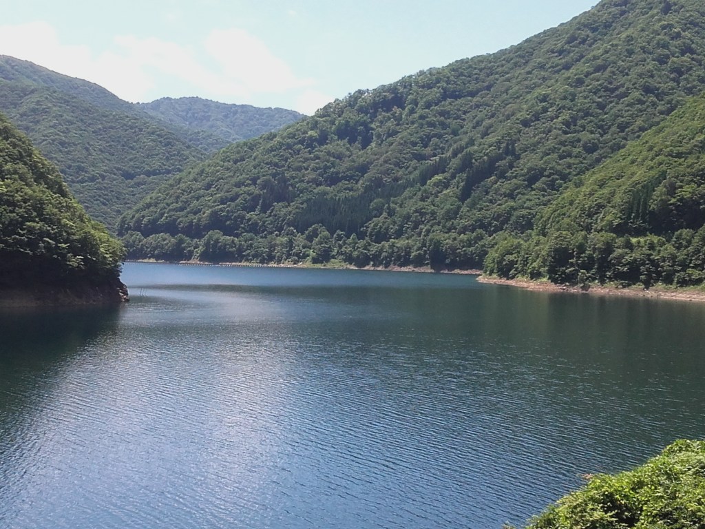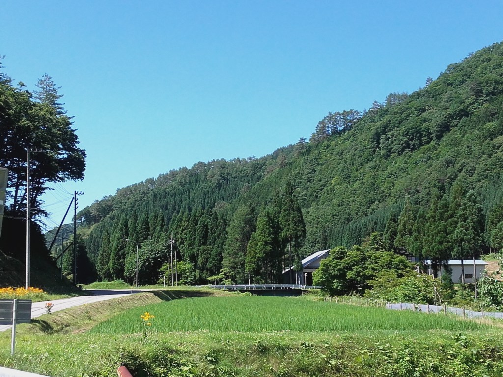 En pleine montée, nous avons croisé un homme en train de descendre. Il nous a regardé en pleine galère et s’est mis à rire. Sur le moment, on s’est dit que nous devions avoir l’air bêtes à pousser nos vélos, tout en sueur et zigzagant sur le passages les plus pentus. Un peu plus tard, une voiture arrive derrière nous et s’arrête à notre hauteur : l’homme croisé plus tôt en descend, et nous tend deux bouteilles de thé frais ! Il était retourné dans la vallée, les avait achetées, puis était remonté pour nous les donner ! Eh bien, en plus de nous rafraichir, il nous a redonné toute l’énergie dont nous avions besoin pour atteindre le sommet et basculer en direction de Shirakawa-go.