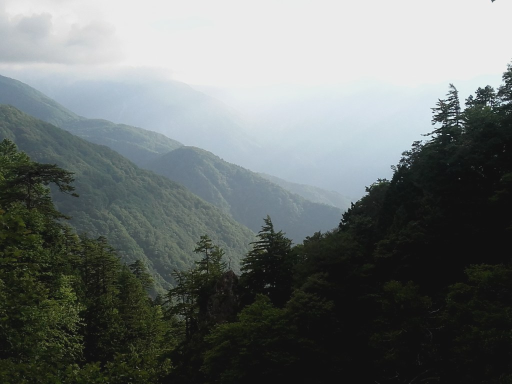 Sauf qu’après une longue descente, en général il y a une longue montée. Et celle-là a fait mal : 10kms à 8,8% de moyenne, que nous avons fait en partie à pied (avec 20 kilos de bagages et 36°, difficile de monter ces pourcentages à vélo) ! Heureusement, depuis le début la gentillesse des Japonais(es) nous épate.