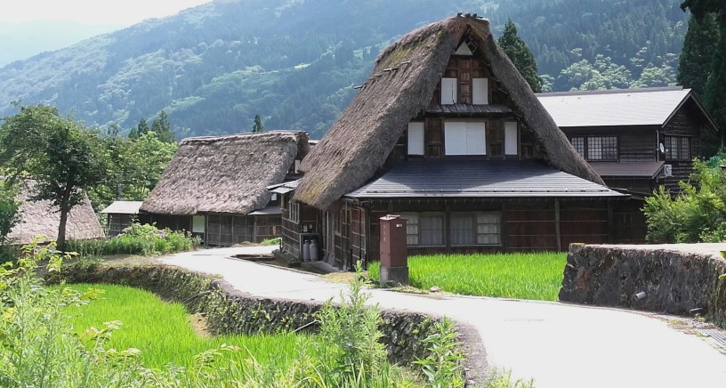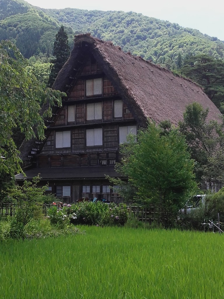 Nous voici donc arrivés à Shirakawa-go, avant d’aller à Gokayama. Ce sont les endroits où sont toujours conservés des villages traditionnels avec les fameuses maisons de style gasshô-zukuri (合掌造り) au grand toit de chaume pentu fait pour résister aux fortes chutes de neige. Si Shirakawa-go est un véritable musée en plein air assez touristique, ce n’en est pas moins une expérience fabuleuse car de nombreuses maisons sont ouvertes aux visites et la promenade à travers le village est tout simplement magique !