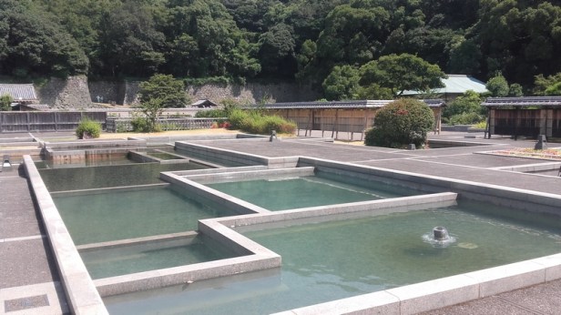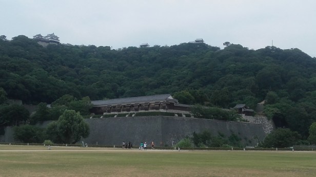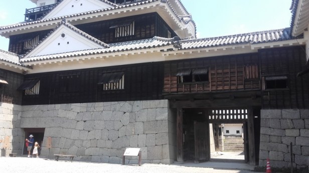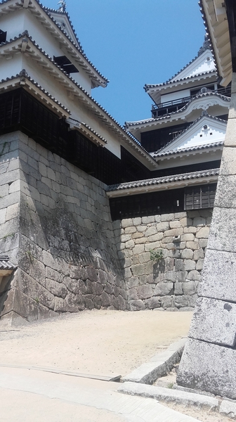 Ce matin, visite du château haut perché de Matsuyama, excessivement intéressante ! On peut circuler partout à l’intérieur, il y a plein d’explications sur l’histoire du château, les différents seigneurs et leur implication, les maîtres d’armes,… nous vous le recommandons ! Mais la chose la plus intéressante pour nous est l’accueil des personnes de Matsuyama. Pour la première fois depuis le début de notre trajet, les gens viennent nous voir pour parler, ou juste savoir d’où on vient et glisser le seul mot français qu’ils connaissent en souriant. Plusieurs personnes sont naturellement venues nous parler, essayer de savoir pourquoi nous étions là, ou juste dire bonjour en passant et nous souhaiter la bienvenue. Dans les autres régions traversées, les gens sont adorables mais ne viennent pas vers nous en général. C’est plutôt nous qui prenons l’initiative. Mais ici ce sont les Japonais qui viennent nous parler avec beaucoup de gentillesse et d’hospitalité ! Est-ce parce que nous sommes au Sud ?