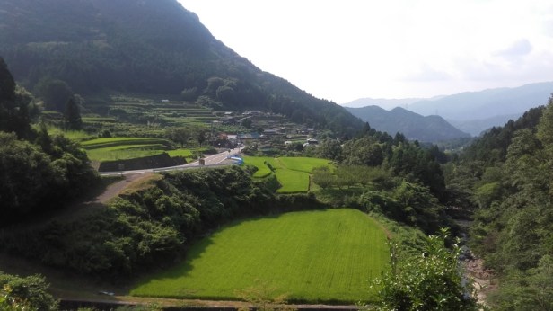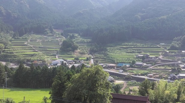 Le lendemain, nous sommes partis à vélo voir dans la montagne voisine (juste au-dessus de la ville de Tôon, à 25kms quand même) un village avec des rizières en étages. La vue en valait le détour ! Nous avons contourné puis traversé les différents hameaux dans ces paysages somptueux, tout en nous disant que nous pourrions très bien nous arrêter ici et y rester toute notre vie tellement on s’y sentait bien !