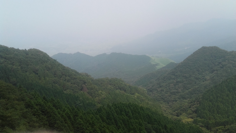 Hier, les 70kms prévus au départ se sont transformés en beaucoup plus : 30kms de montées/descentes, suivis de 30kms de faux plat montant contre le vent, puis 40kms à chercher les routes praticables autour du Mont Aso pour trouver la guest house. La région de Kumamoto a en effet été touchée par un gros tremblement de terre récemment et de nombreux éboulements et effondrements ont bloqué les routes. Du coup, la journée a été très longue, avec trois heures de nuit à chercher les petites routes qui nous permettraient d’arriver.