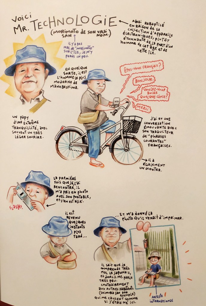 Après Tokyo Sanpo, Florent Chavouet revient avec une nouvelle aventure, cette fois-ci sur une petite île de la mer intérieure de Seto : Manabe Shima. Sur cette île d’un peu moins de 300 habitants, le dessinateur va passer deux mois et réaliser des carnets de voyage avec le même génie bordélique et le même humour que dans son précédent ouvrage.