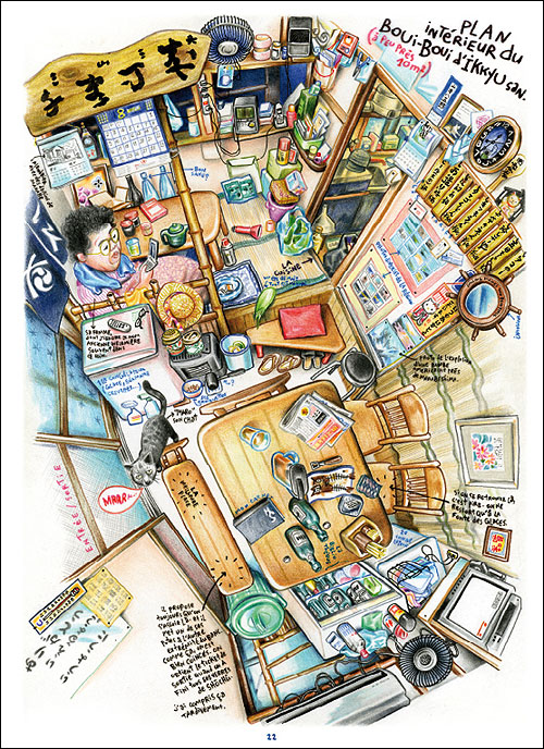 Toujours truffé de nombreux détails et de traits d’humour dévastateurs, le livre se dévore à grande vitesse, tellement nous sommes pris par les dessins et les aventures de Florent Chavouet. Chaque page est un régal, et l’on navigue dans un ensemble qui mélange toutes les formes en étant tour à tour documentaire, portrait, récit, description, amusement, etc.