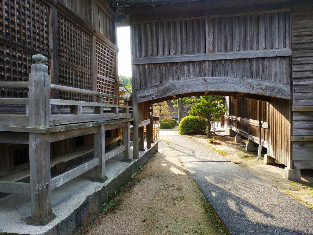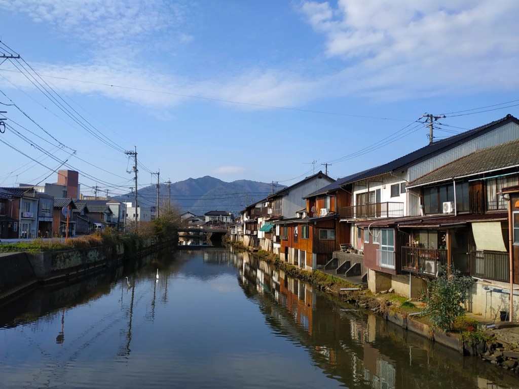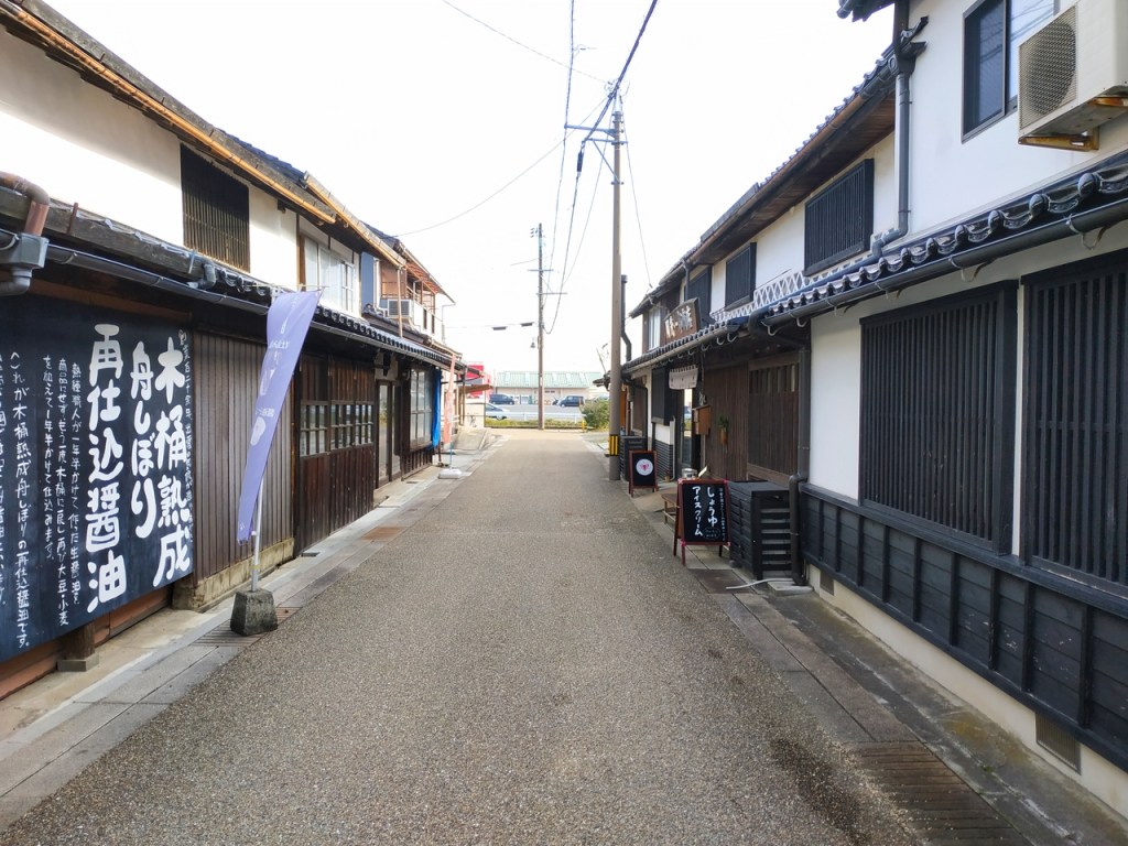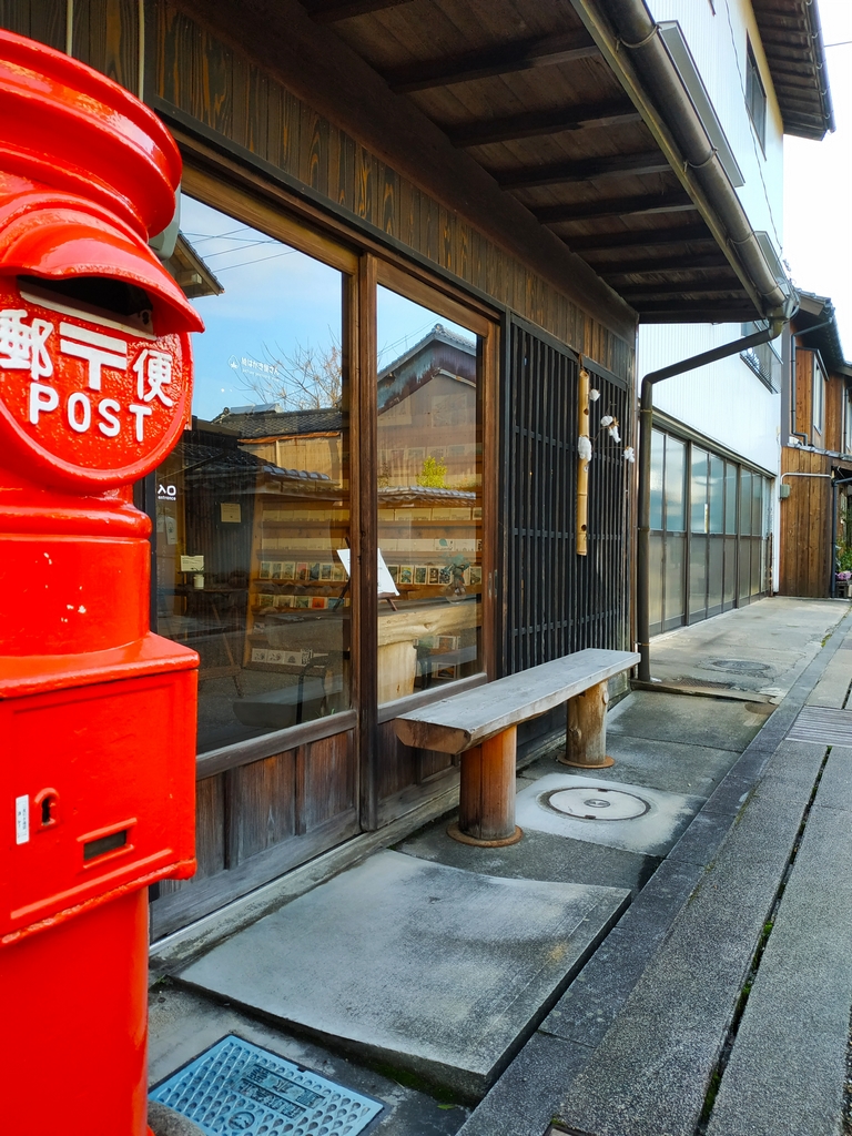 Me voici donc arrivé à Hirata pour les visites de Momen Kaidô (la route du coton). Ici se trouve une très belle rue historique préservée en forme de L, dans laquelle de nombreux magasins de marchands sont installés depuis plusieurs siècles. Grâce à un environnement naturel riche et au canal qui la relie au lac Shinji, la ville a prospéré au cours du 18ème siècle, permettant aux marchands de développer une production de produits locaux de qualité. La plupart des maisons qui se trouvent dans la rue historique paraissent étroites mais sont en réalité assez profondes et servent encore actuellement d’ateliers, de fabriques, d’entrepôts pour les productions locales, et donnent de l’autre côté sur la rivière.