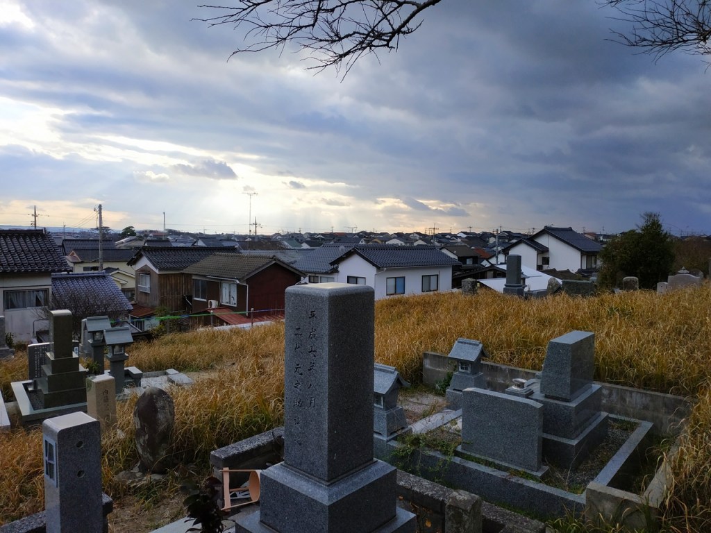 A l’ouest du grand sanctuaire se trouve la plage d’Inasa no hama, où je compte me rendre pour terminer cet après-midi. Dans les anciens récits, il est dit qu’une divinité trouvant le pays d’Izumo trop étroit tira à lui des terres lointaines pour l’agrandir grâce à une grande corde. Ces terres sont les montagnes du nord actuelles tandis que la corde est devenue la plage de sable blanc en forme d’arc d’Inasa no hama. J’y vais à pied car la route est aménagée avec de larges trottoirs, et cela me permet de passer par un cimetière où repose Izumo no Okuni, considérée comme la fondatrice du théâtre kabuki.