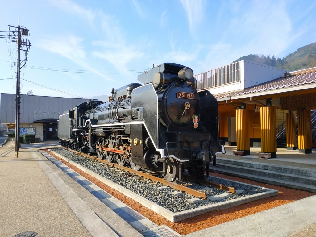 A la sortie de la gare, une vieille locomotive s’impose à notre vue. Le modèle D51 est un type de locomotive à vapeur construite par les chemins de fer du gouvernement japonais de la fin des années 1930 au début des années 1950. Celle-ci fait partie des 174 encore conservées au Japon. Produite en temps de guerre, certaines pièces d’acier étaient remplacées par du bois, comme les marchepieds ou encore la soute à charbon. Son surnom est namekuji-gata, « en forme de limace » !