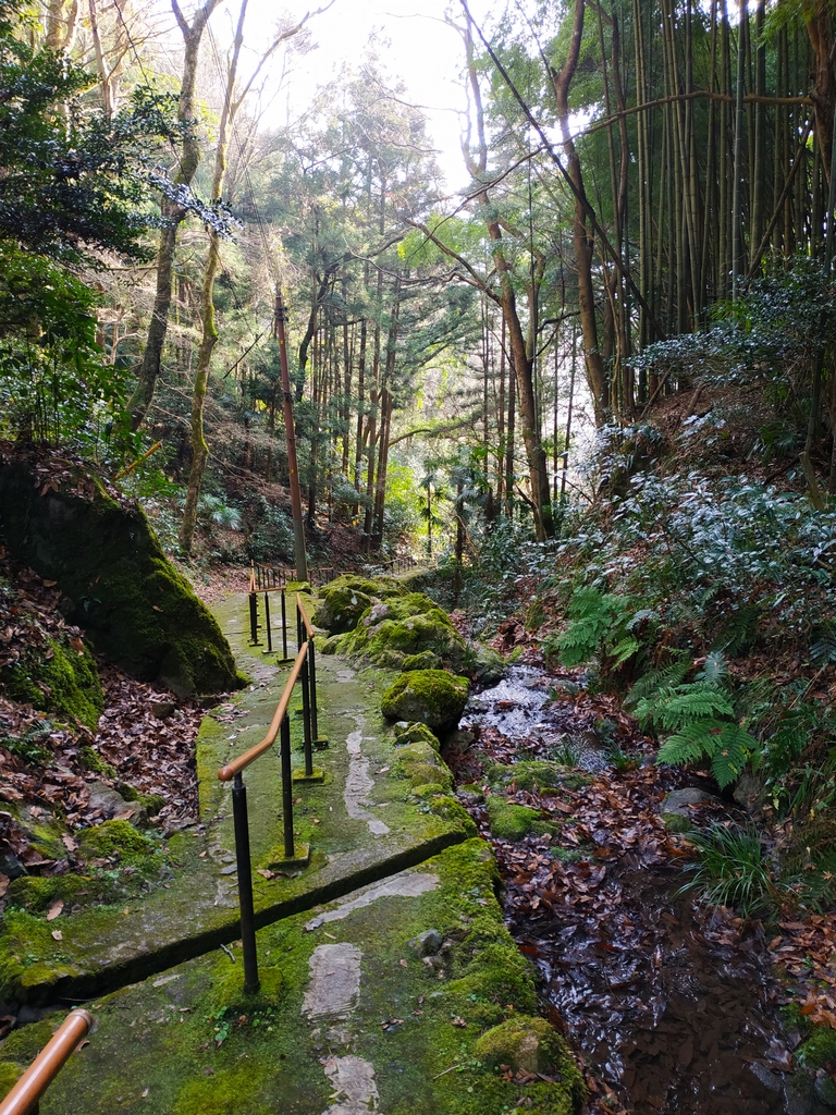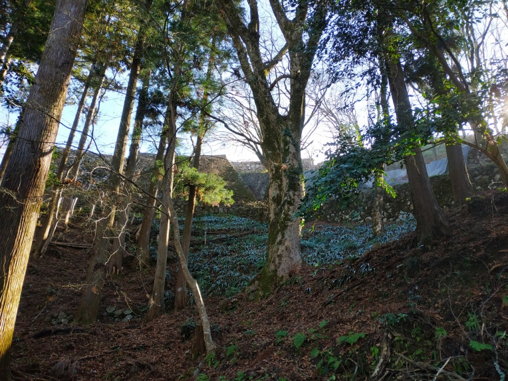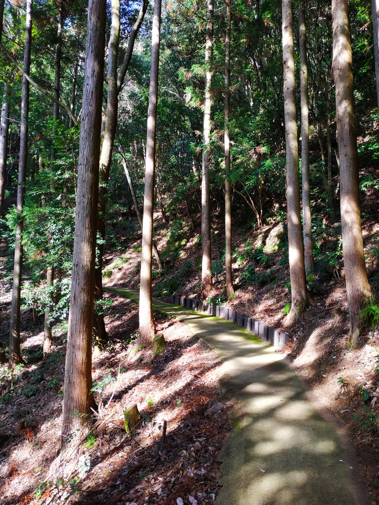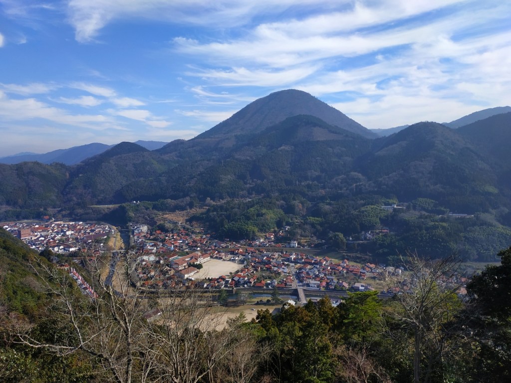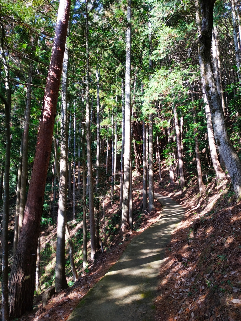 Après avoir profité de cette superbe ambiance pendant de nombreuses minutes, je poursuis dans la même direction pour trouver le chemin de randonnée qui mène aux ruines du château de Tsuwano. Il y a un télésiège qui permet de se rendre directement en haut de la montagne, mais avec ce beau temps je préfère monter à pied par la forêt et économiser les 700 yens du billet pour m’offrir une douceur au magasin de thé l’après-midi ! Le chemin est bien entretenu et la balade très agréable, mais la pente est assez rude. Il vaut mieux être un peu préparé pour cette demi-heure de montée.