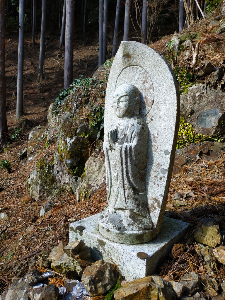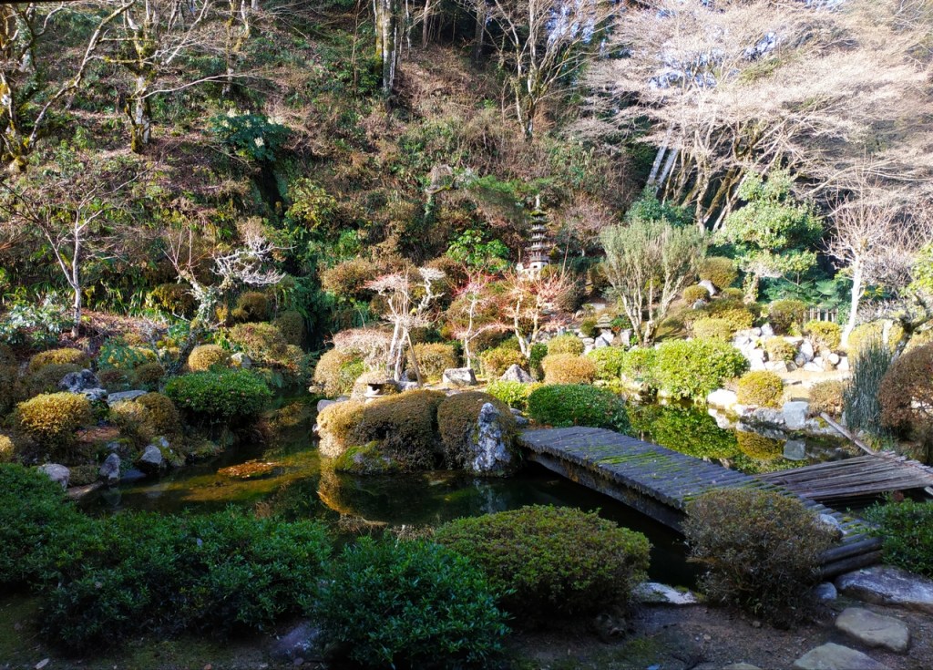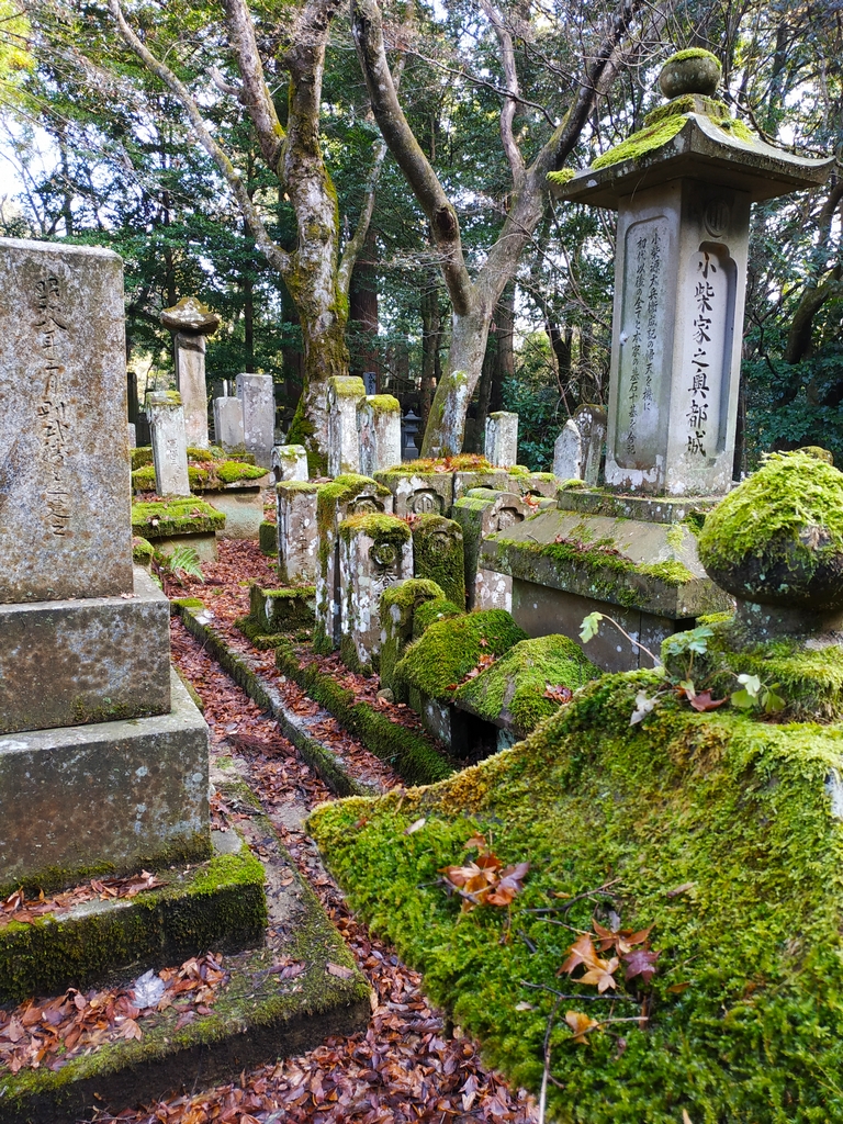 Après la descente par le même chemin qu’à l’aller, je remonte dans la forêt quelques centaines de mètres plus loin pour me rendre au temple Kakuozan Yomeiji. Fondé en 1421, c’était le temple principal de la secte bouddhiste Sôtô, et des centaines de moines y venaient pour étudier. Devenu progressivement temple familial des seigneurs de Tsuwano, il abrite dans son enceinte de nombreuses tombes de ces seigneurs ainsi que celle du célèbre écrivain Mori Ôgai.