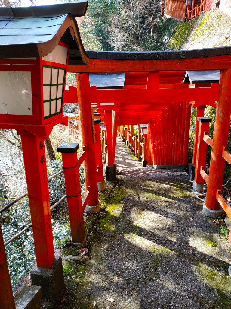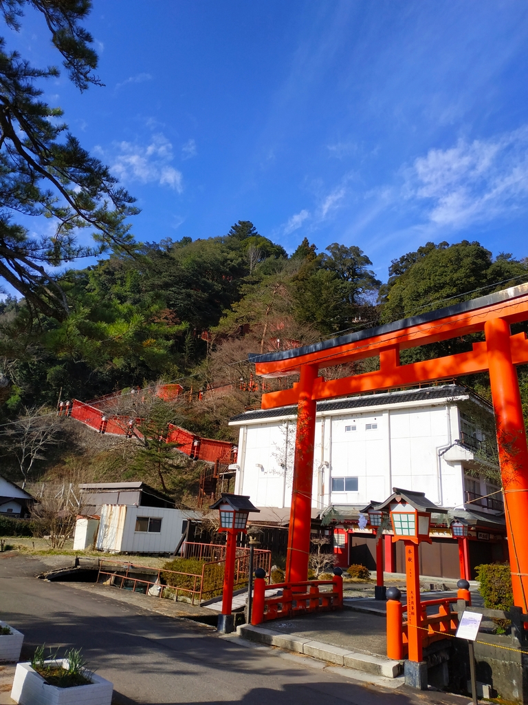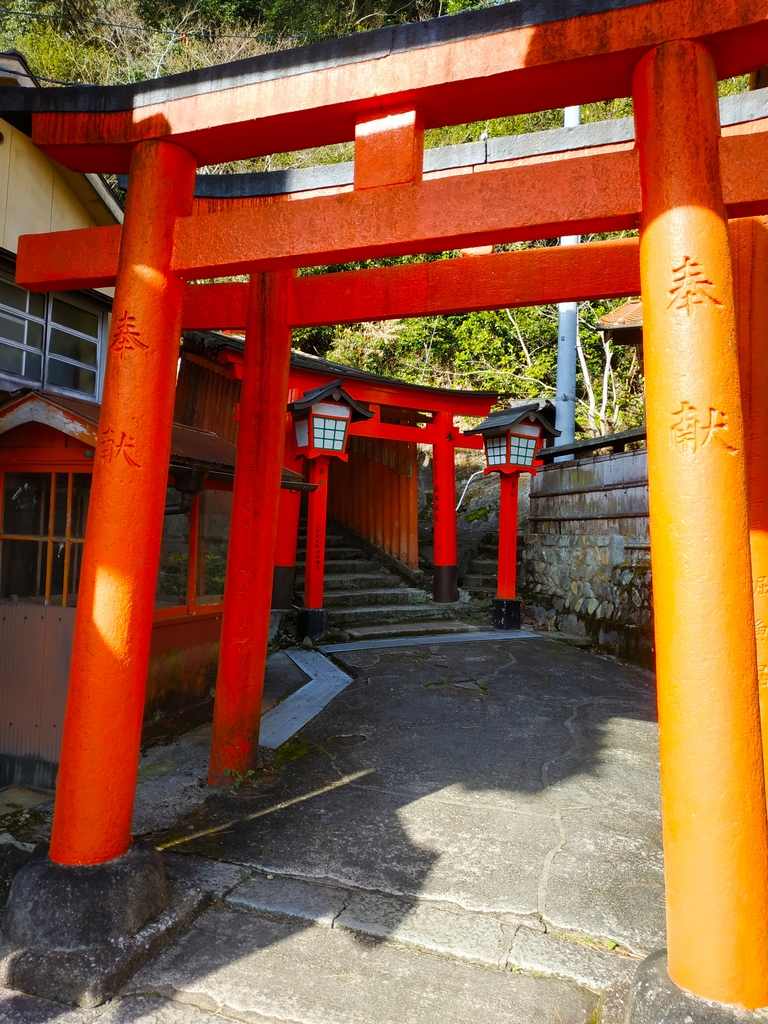 Je continue ensuite à visiter la partie ouest de la ville en allant au sanctuaire Taikodani Inari Jinja. Ce sanctuaire a été construit en 1773 afin de protéger le château de Tsuwano et d’apporter la prospérité aux habitants de la ville. Il se situe justement à mi-hauteur, entre la ville et le château, et fait partie des cinq plus importants sanctuaires Inari du Japon.