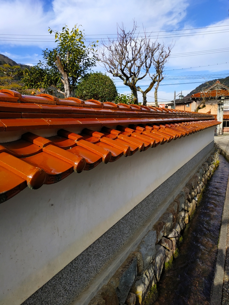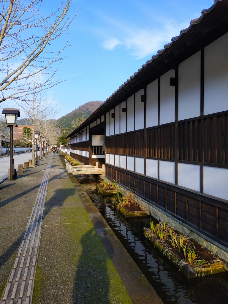 Enfin me voici dans la fameuse rue Tonomachi, la rue principale de Tsuwano et un de ses symboles. De magnifiques maisons, d’anciennes résidences de samouraïs, des entrepôts aux murs blancs, une église catholique, une ancienne école, un canal rempli de carpes koi et bordé d’iris fleuris en juin, des magasins et restaurants de qualité proposant des produits et des mets locaux… un véritable petit paradis de plusieurs centaines de mètres, idéal pour ressentir ce que pouvait être la vie japonaise dans une ville-château cachée au creux d’une vallée.
