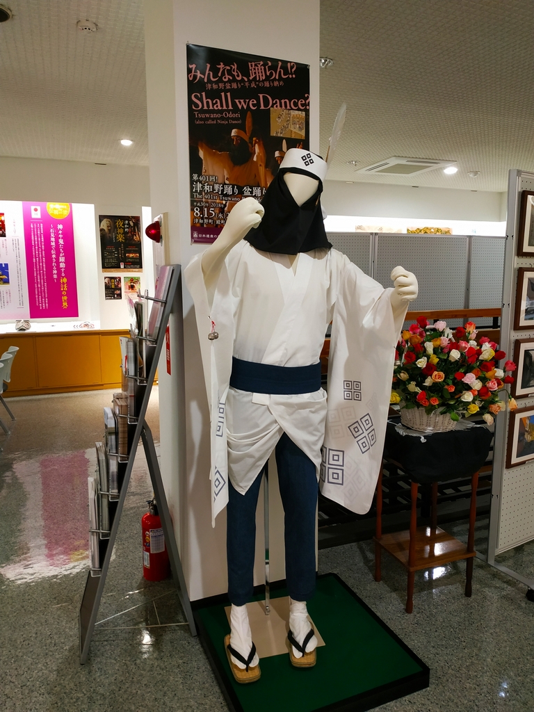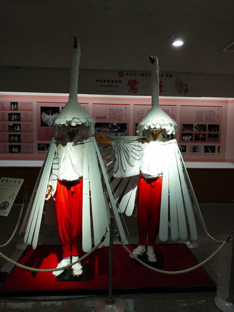 Il y a également d’autres choses exposées au Centre, comme les costumes des danses populaires de la ville et ceux de la danse du Héron blanc (sagi mai), qui ne se perpétue qu’à Tsuwano.