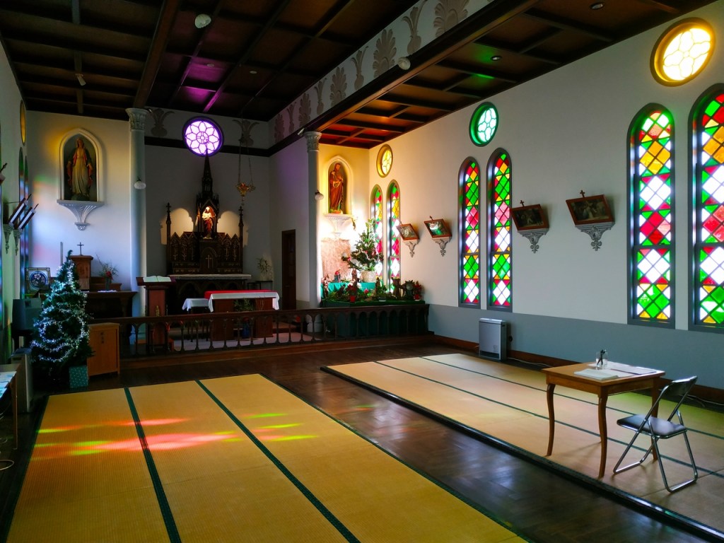 En 1868, première année de la Restauration Meiji, une loi fut votée pour interdire le christianisme, déjà fortement réprimé auparavant. 3394 chrétiens, descendants des chrétiens cachés pendant les 250 ans de la période Edo, furent arrêtés à Nagasaki et envoyés à travers le Japon pour être torturés afin qu’ils renoncent à leur foi. 154 l’ont été à Tsuwano dans l’enceinte du temple Korinji, et 37 en sont morts. L’un de ces martyrs, Yasutaro, était enfermé dans une cage de 90cms de côté et plongé dans l’eau glacé de l’étang. Il dit qu’il avait pu tenir plus longtemps grâce à l’apparition de la vierge Marie qui venait lui parler et le consoler la nuit.