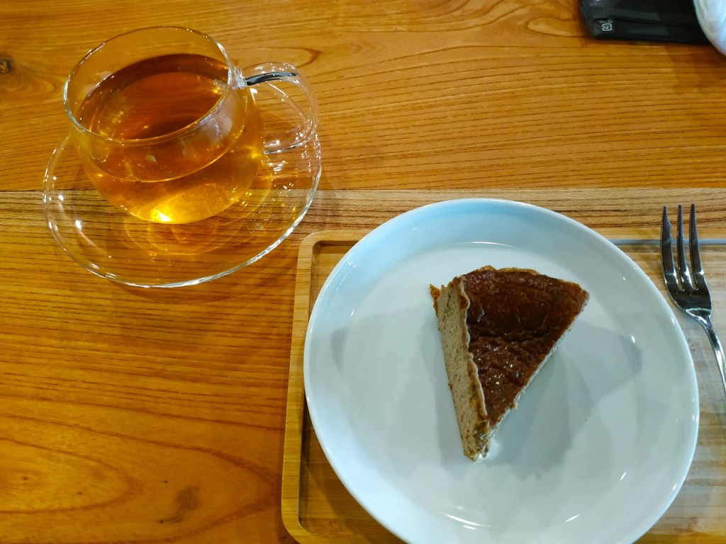 Je vous laisse en profiter avec les dernières photos, mais un dernier petit arrêt s’impose avant à Kômien Kamiryô Chaho, le magasin de thé tenu par Adrien et son épouse japonaise. La partie salon de thé est extrêmement agréable, et j’ai pu y déguster la spécialité : le zara-cha. Il s’agit d’un thé à base d’une plante cultivée localement, le kawaraketsumei, qui a de nombreuses vertus pour le corps. Cette boisson est bue à Tsuwano depuis l’époque Edo ! J’ai également pris une pâtisserie maison à base de cette même plante, un parfait petit goûter au calme après une journée de visites passionnantes. J’ai eu la chance de pouvoir échanger un petit moment avec Adrien, une discussion vraiment passionnante qui aurait pu se prolonger longtemps si l’heure de mon train n’approchait pas si vite ! Un grand merci pour ce moment, et au plaisir de se rencontrer à nouveau !