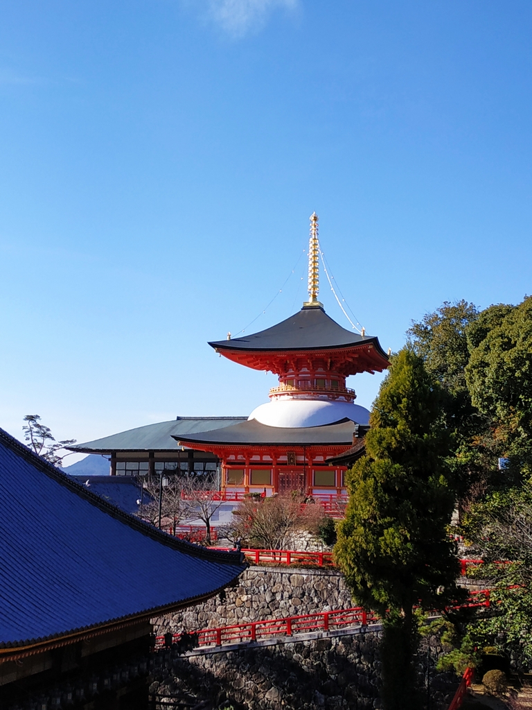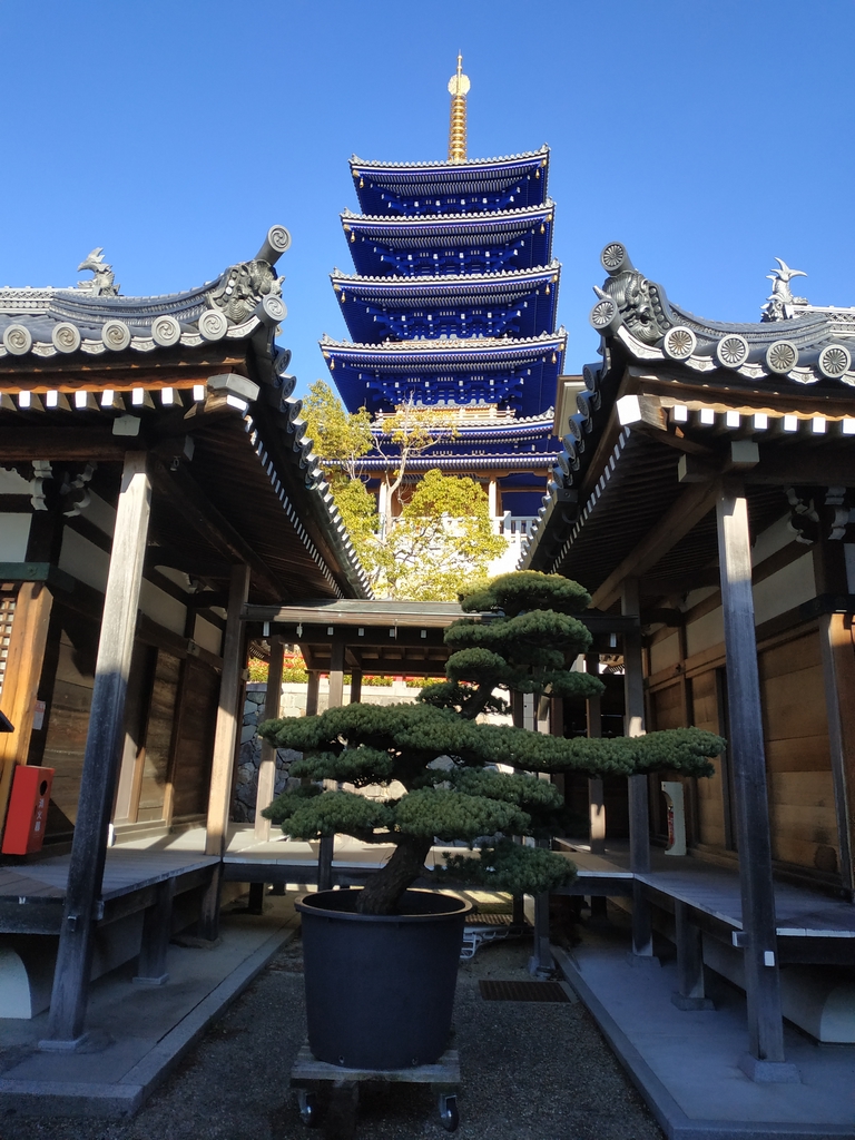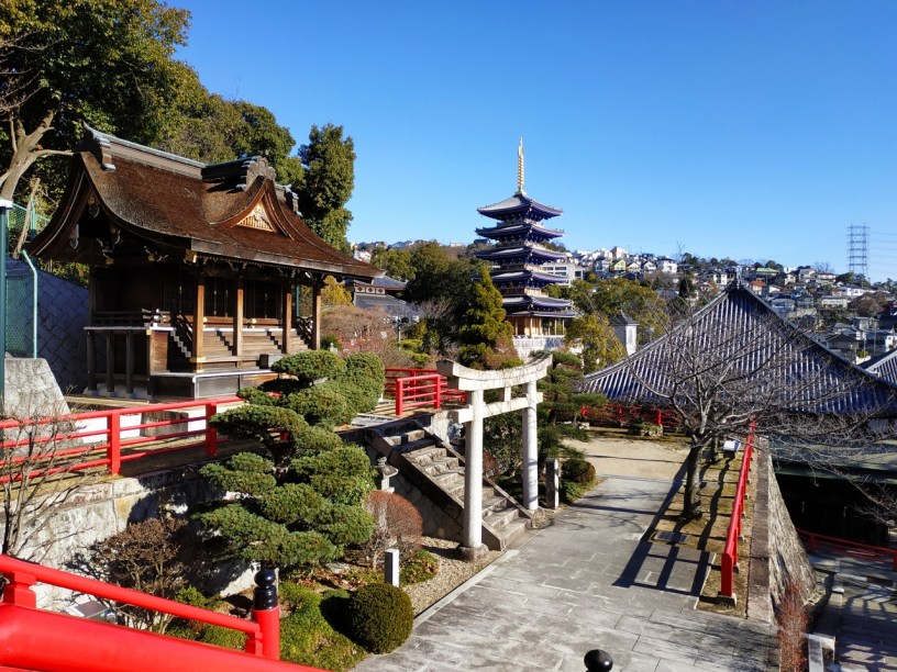 Au départ de l’hôtel, nous sommes partis visiter le Nakayama-dera. Fondé au sixième siècle par Shôtoku Taishi et développé au fil des siècles, il s’agit maintenant d’un vaste complexe à flanc de colline connu pour être le premier site sacré du Japon dédié au bodhisattva Kannon, la déesse de la miséricorde.