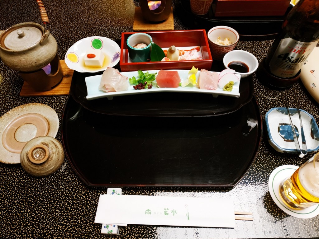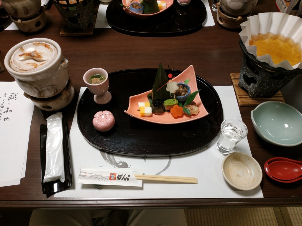 Le repas du soir était un véritable festin, comme souvent avec ce type de cuisine kaiseki que l’on trouve dans les ryokan. Chaque petit plat est raffiné et beau à voir, quasiment tous les ingrédients sont de saison et locaux, le service est impeccable,… J’ai mis du temps à aller pour la première fois dans un ryokan, mais je les adore maintenant, particulièrement dans les villes plus petites et un peu « à la campagne ».